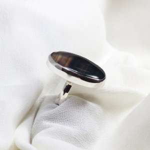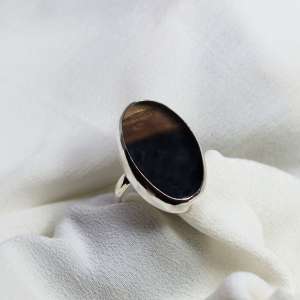 Anillo de fluorita con plata de ley 925. Está elaborado artesanalmente. Lleva engarzada una preciosa fluorita semitransparente de varios colores. Su tamaño es de 3,2 cm de largo por 1,8 de anchura. y con un aro de 4mm. Tallas 9 y 10