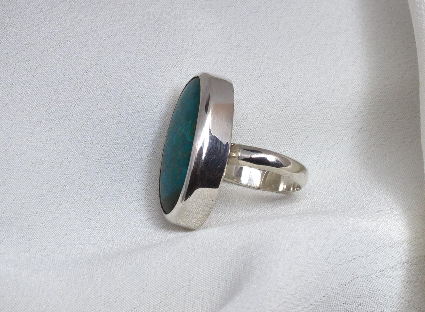 Anillo de mujer de plata de ley 925 con crisocola grande de forma ovalada talla 7.5