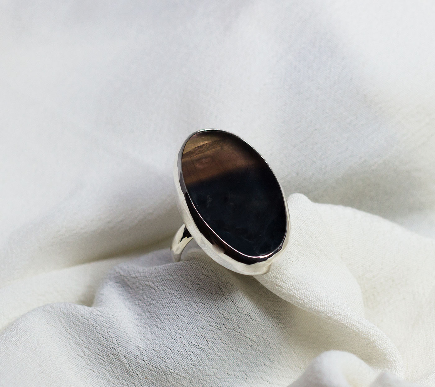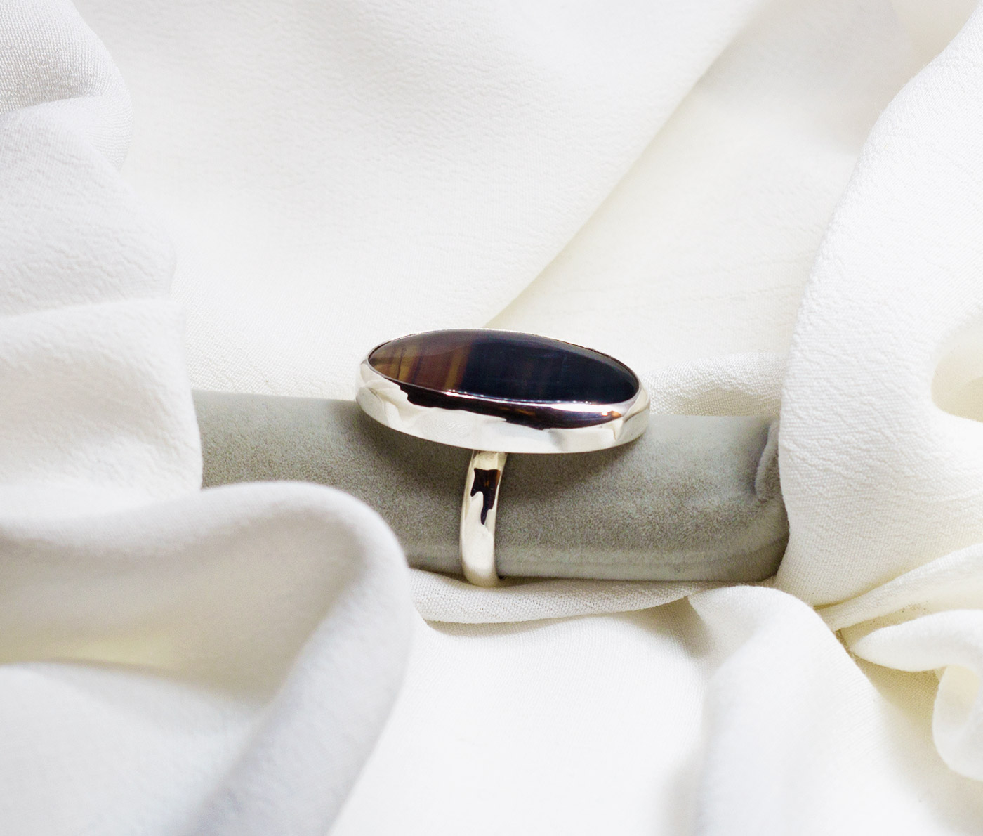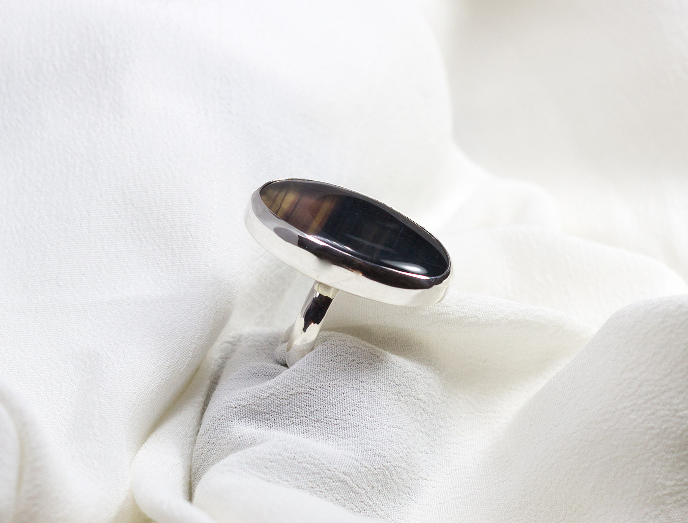Anillo de fluorita con plata de ley 925. Está elaborado artesanalmente. Lleva engarzada una preciosa fluorita semitransparente de varios colores. Su tamaño es de 3,2 cm de largo por 1,8 de anchura. y con un aro de 4mm. Tallas 9 y 10