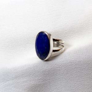 Anillo en plata de ley 925 de doble aro con lapislazuli. Hecho artesanalmente. El lapislázuli es ovalado de un intenso azul noche. Talla 8