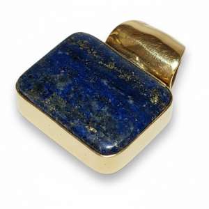 Colgante con lapislázuli y oro. El colgante está engarzado con plata de ley 925 y lleva un chapado en oro de 18 quilates. El lapislázuli tiene forma rectangular con un precioso azul noche con puntos de pirita que acreditan su proveniencia afgana. Mide 1 por 1.5 cm. El largo total con la anilla es de 2 cm. Está elaborado artesanalmente.