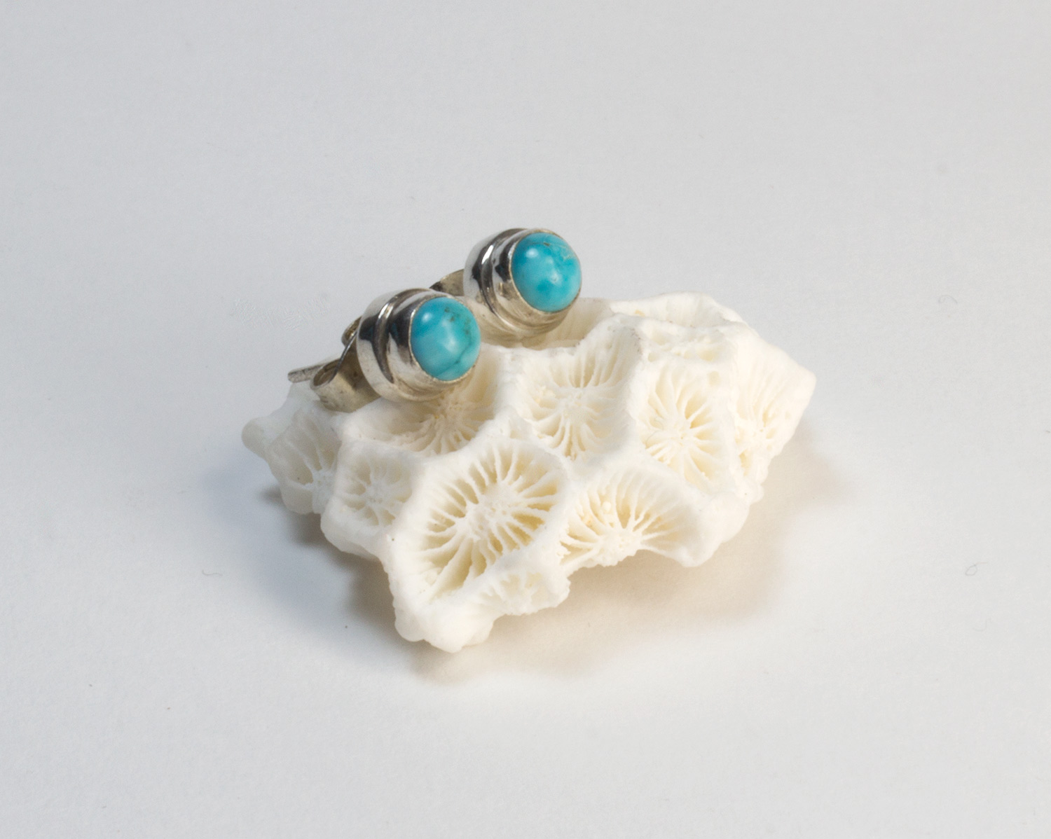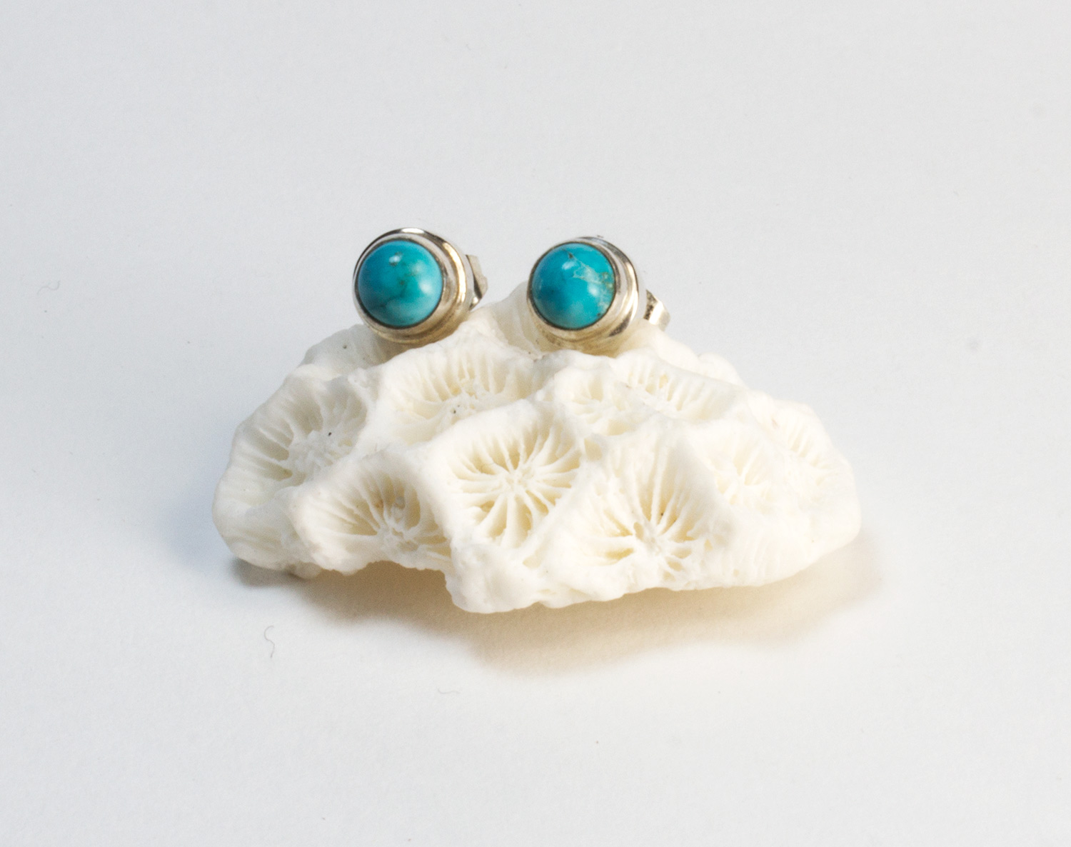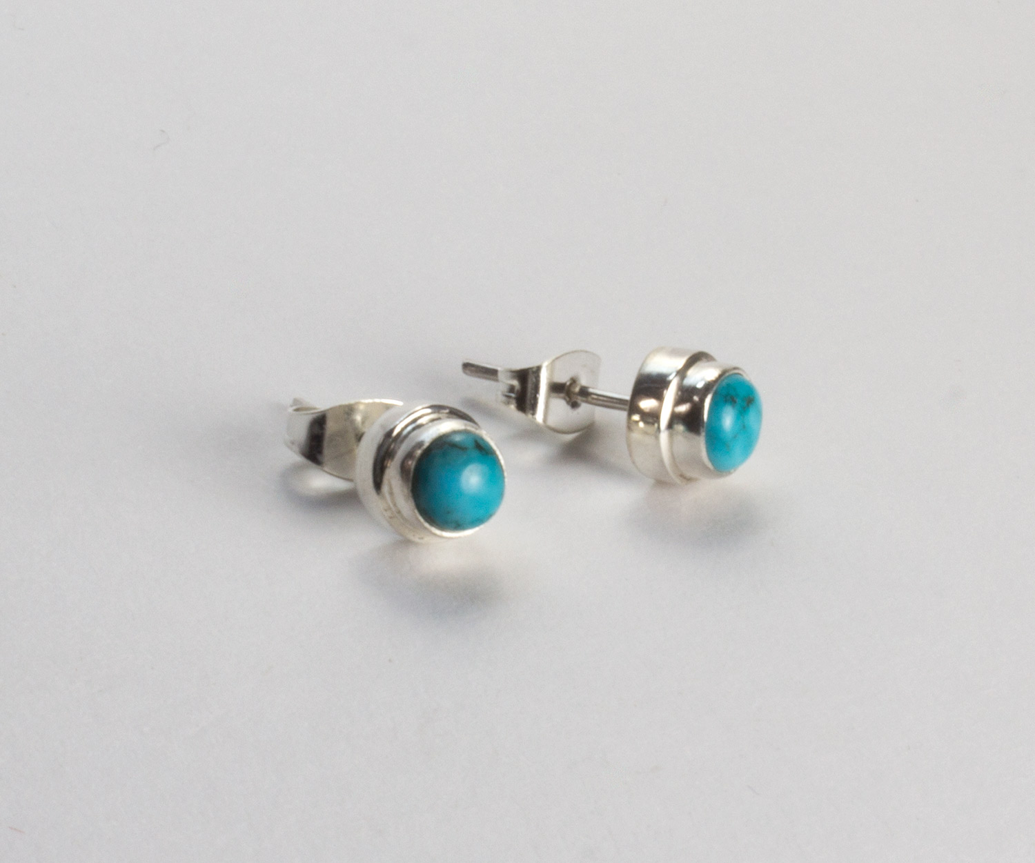 Pendientes a presion de turquesa y plata de ley 925 . Las turquesas son de color azul cielo y de forma redonda. Los pendientes son redondos también y las piedras están engarzadas con una doble caja muy bonita. El pendiente tiene un tamaño de 0,7 mm de diámetro, y 0,6 mm la turquesa y con una altura de 0,6 mm. El cierre es a presión. Está elaborado en modo artesanal.