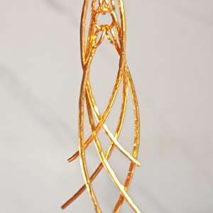 Pendientes largos en oro y plata de ley 925. Hechos en plata de ley y están chapados en oro de 18 quilates. Miden 8 cm. de largo Seis finas piezas de plata martelada unidas escalonadamente forman estos elegantes y originales pendientes elaborados artesanalmente.